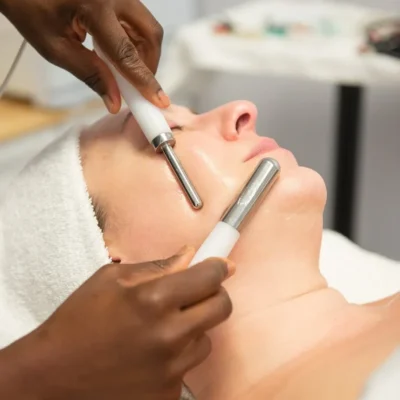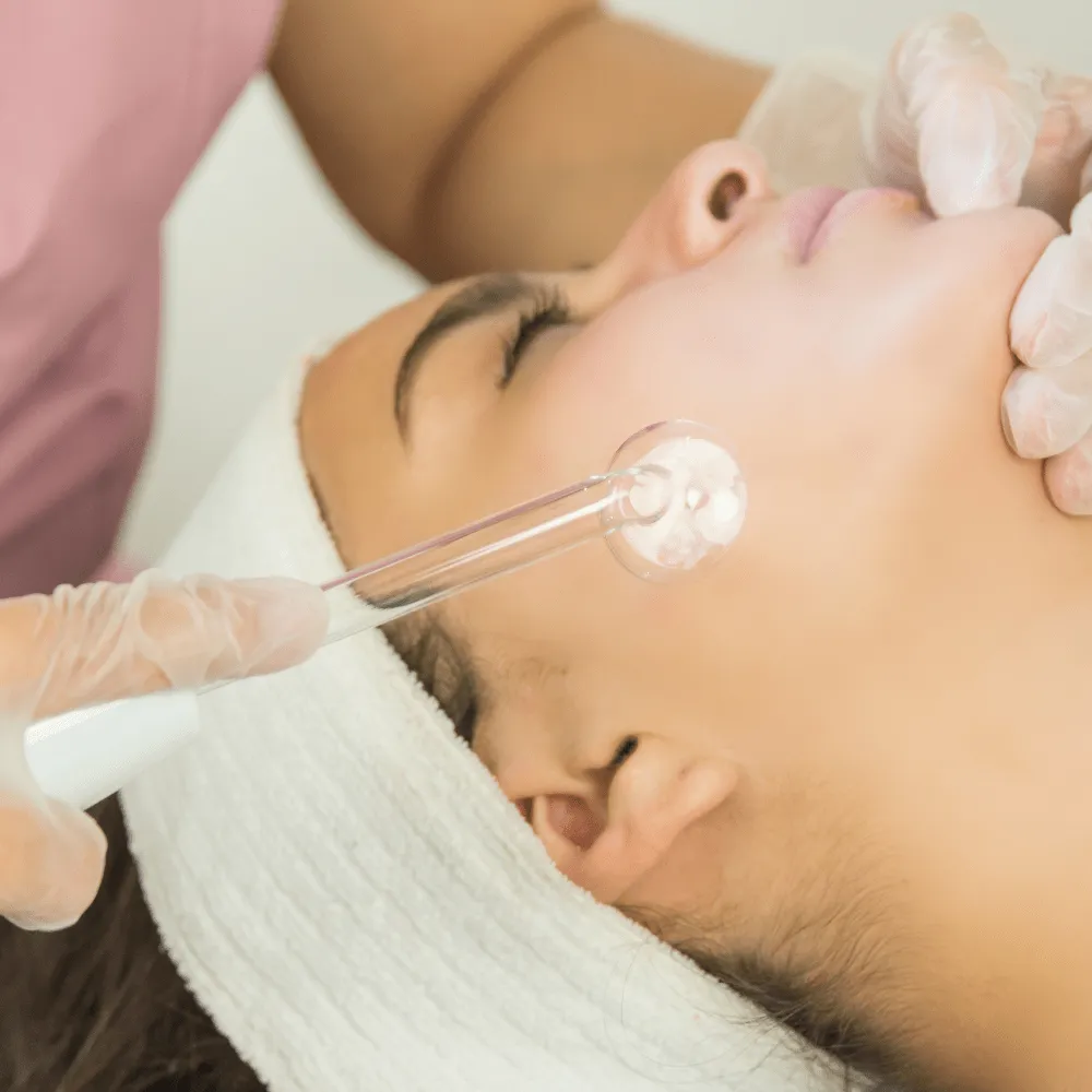 90 minutes, high frequency facial. The high frequency facial is used to treat and prevent stubborn acne, shrink enlarged pores.